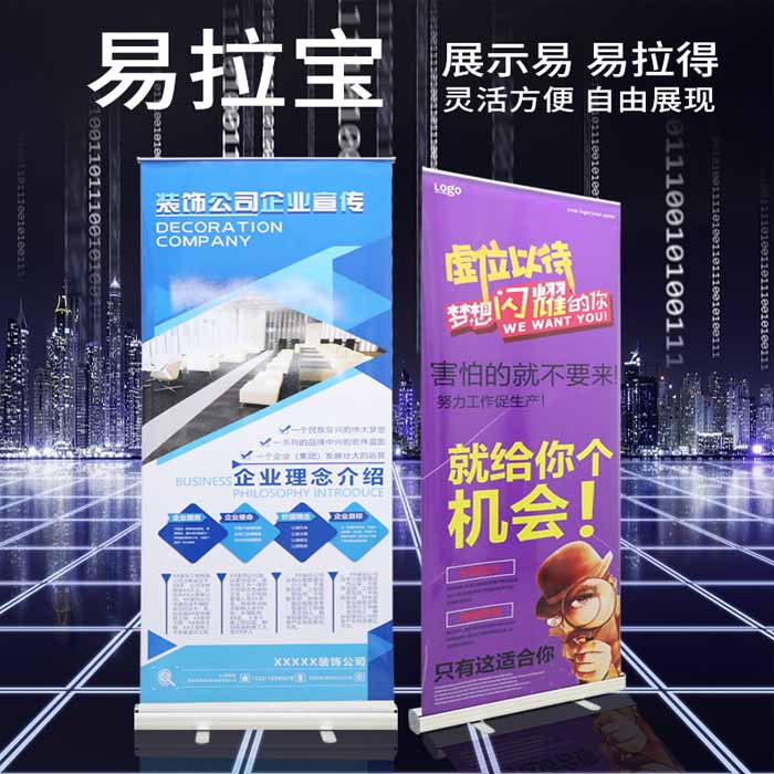 - 豪华易拉宝:采用进口优质材料与精细工艺,色泽饱满、质感高级,支持异形结构、特殊涂层等个性化定制,助力高端场合脱颖而出。