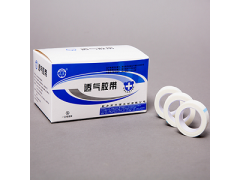 透气胶带由非织造布和压敏胶制成。带状粘贴材料,非弹性,不与创面直接接触。粘贴部位为完好皮肤。用于对创面敷料、绷带等提供粘贴力,以起到固定作用。
